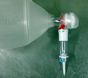 - Rapid establishment of an airway via cricothyroidotomy. The drip chamber of a 60 drip set is cut off and the spike used to improvise a one-step cric. A bag valve mask can be directly attached to the chamber, and ventilation can be effectively established by these means.
